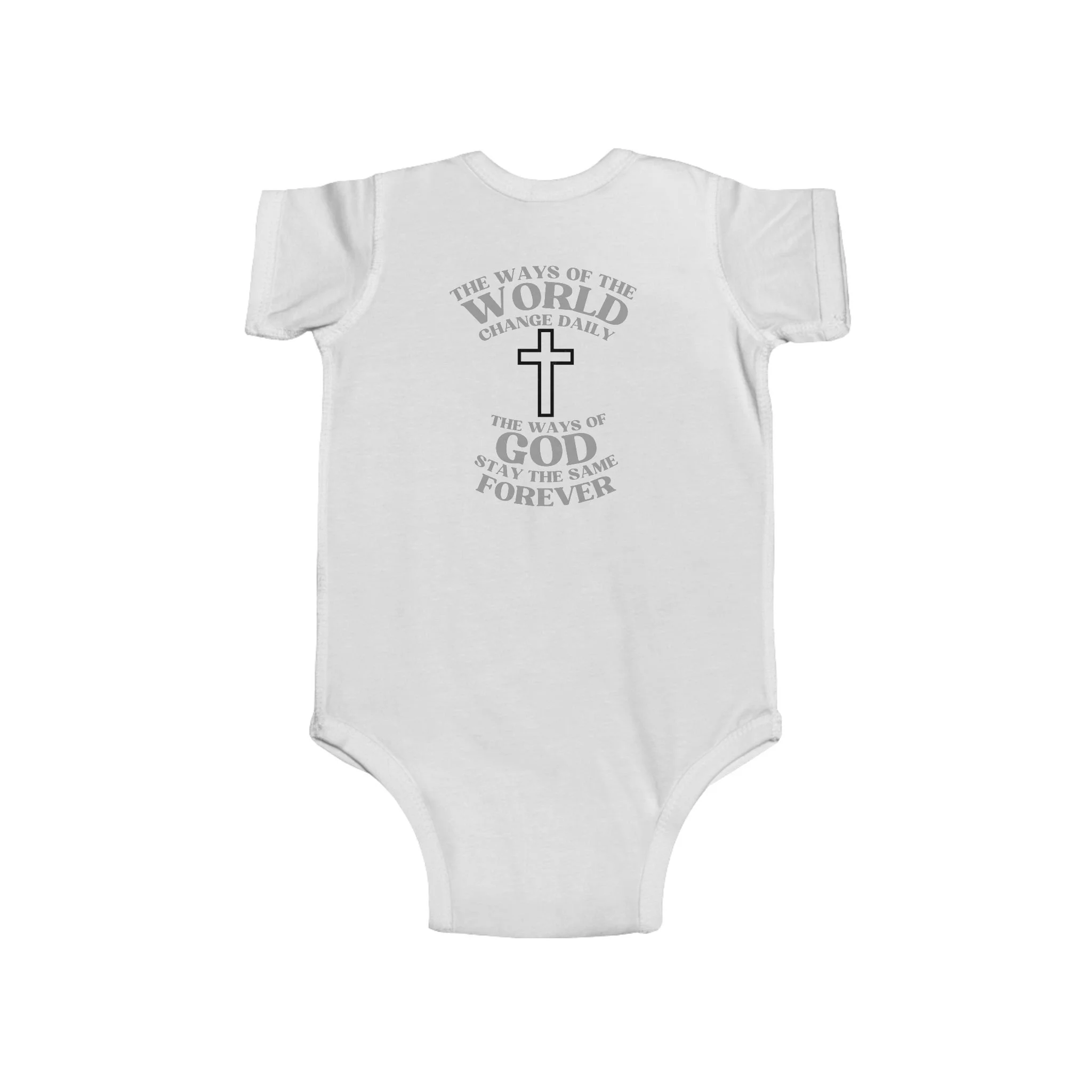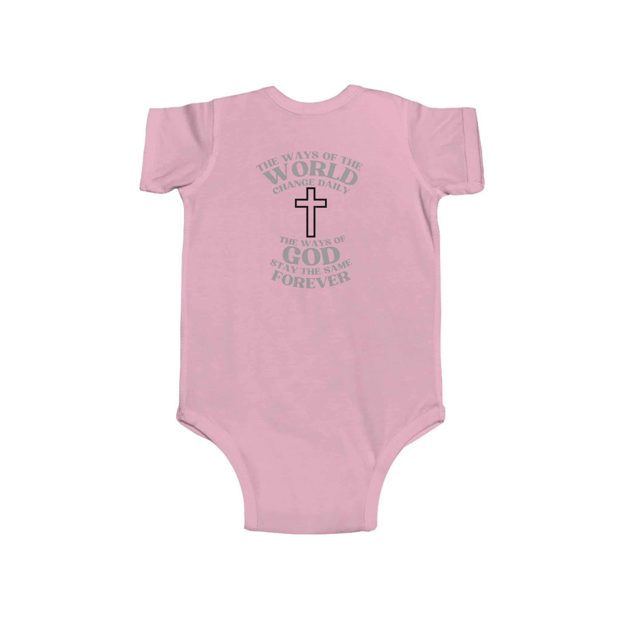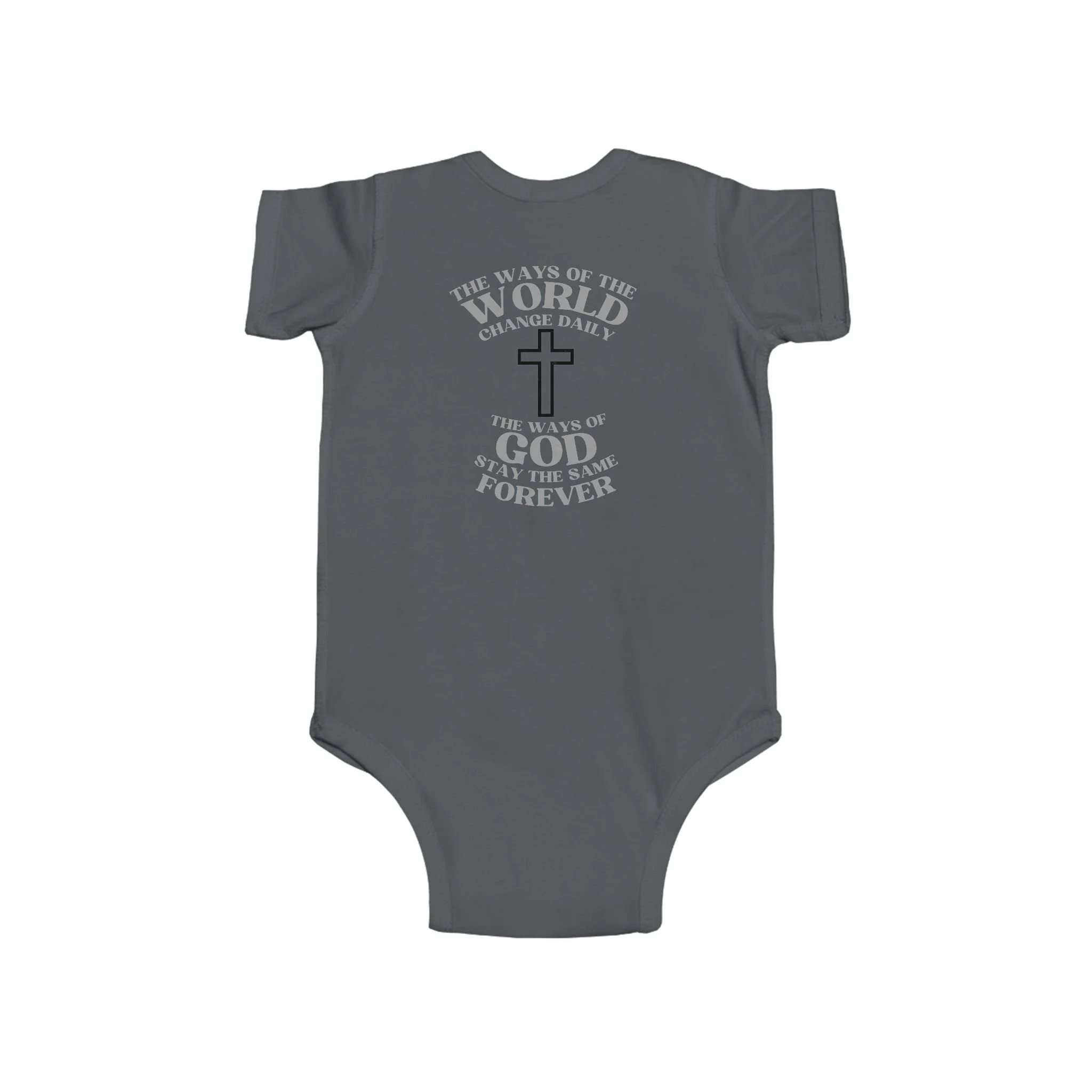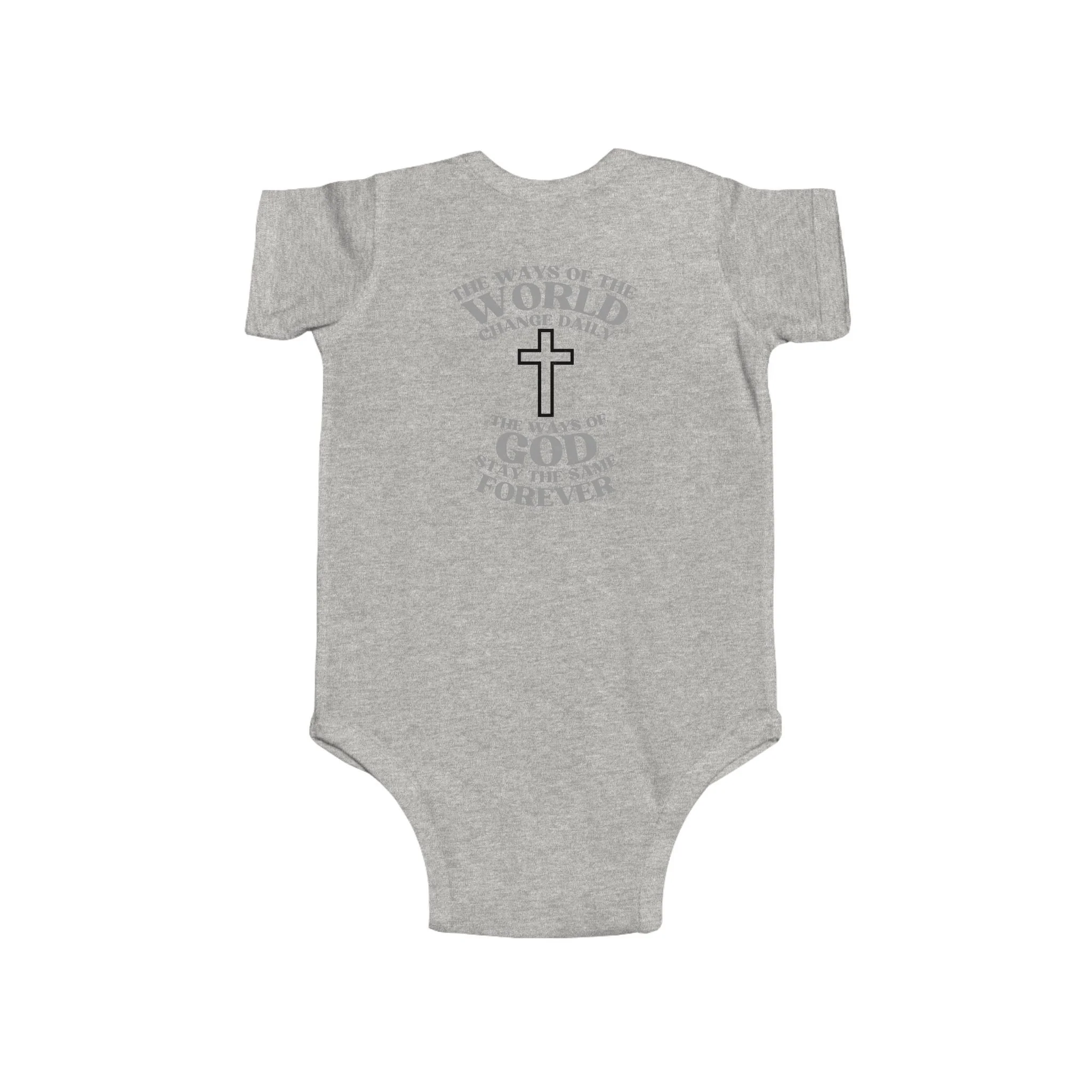 Baby clothing needs to be both durable and soft. With the infant fine jersey bodysuit, youths get just that. The fabric is 100% cotton for solid colors. For heather colors, polyester is included. There are seams along the sides of this product. All bindings are made with ribbed knitting for improved durability. There are plastic snaps at the cross closure for easy changing access.